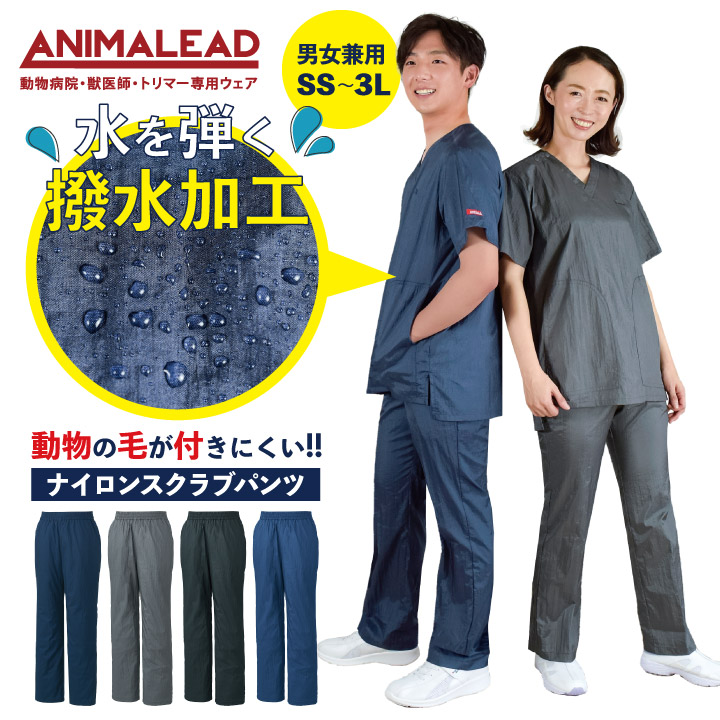 アニマリード スクラブパンツ ANIMALEAD 獣医師 トリマー 動物病院 ペットショップ チームスクラブ 白衣 男性 女性 兼用 ナイロン はっ水加工 チトセ ct-al0023