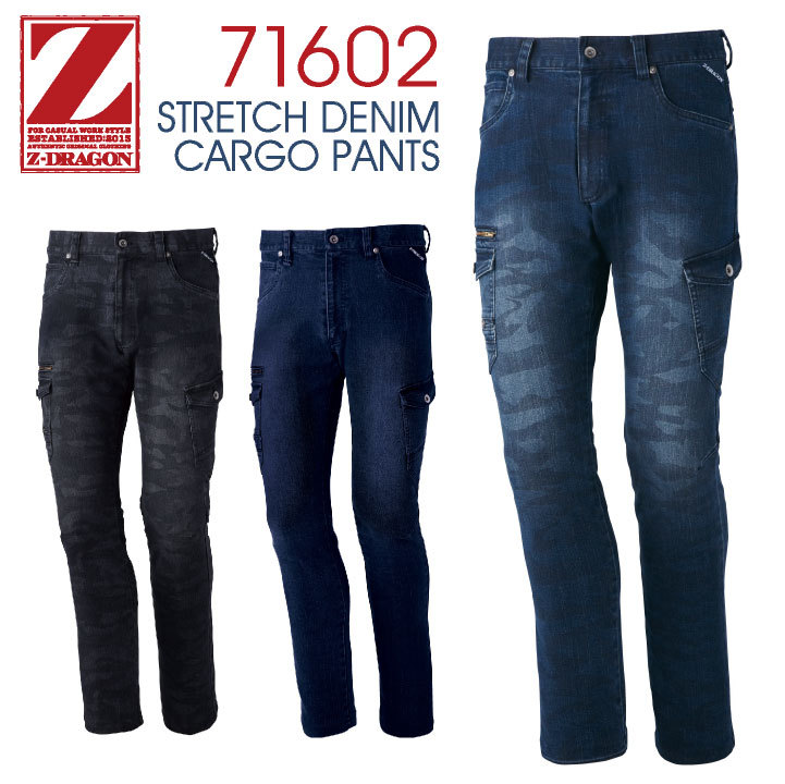 71602 ストレッチ ノータックカーゴパンツ おしゃれ ボトムス 素材 デニム 迷彩 カジュアル かっこいい 動きやすい 上下コーディネート