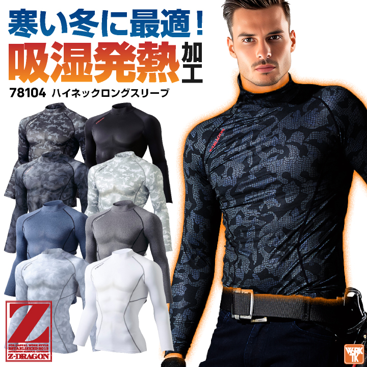 自重堂 Z-DRAGON ハイネック インナーシャツ コンプレッション 裏起毛 ストレッチ 吸湿発熱 吸汗速乾 消臭抗菌 暖かい 防寒 秋冬 (ネコポス) jd-78104