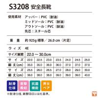 s3208 スチール芯先芯入り安全長靴 安全靴 長靴 クッション性 インソール 抗菌 耐滑 衝撃吸収 自重堂 JICHODO