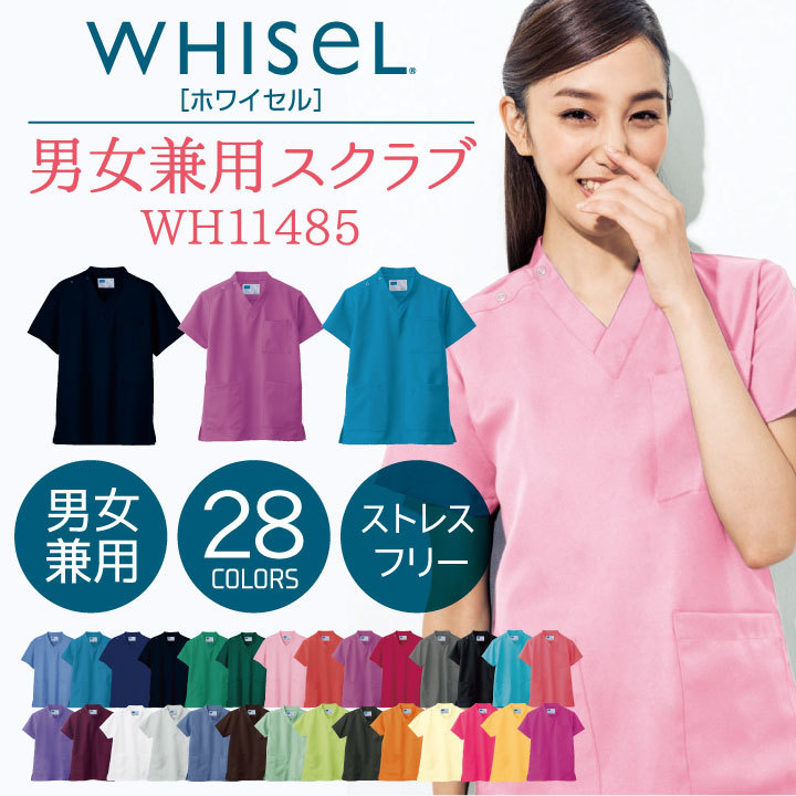 WH11485C ホワイセル 男女兼用スクラブ すっきり シンプル 飽きのこないデザイン メンズ レディース ユニセックス 医療 美容 介護