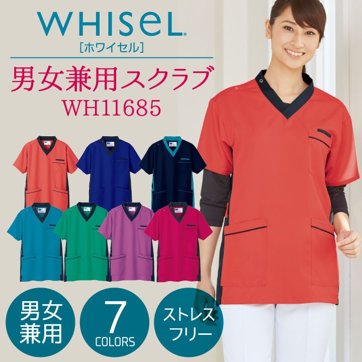 WH11685 ホワイセル 男女兼用スクラブ 配色使いの おしゃれ なスクラブ メンズ レディース ユニセックス 医療 美容 介護