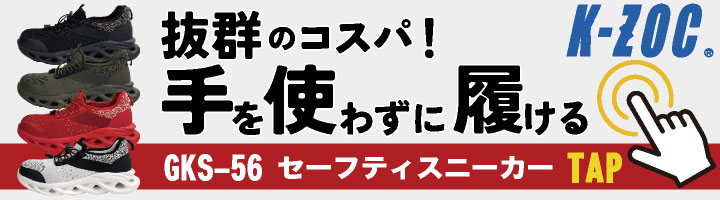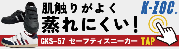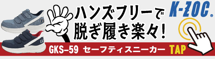 K-ZOC GKS-58 セーフティスニーカー ゴムヒモ 今話題の手を使わずに履けるハンズフリータイプ。 スピーディな足入れでストレス知らず!