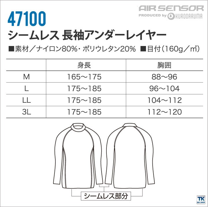 シームレス 接触冷感 ストレッチ 吸汗速乾 消臭テープ 消臭糸 インナーシャツ クロダルマ エアーセンサー