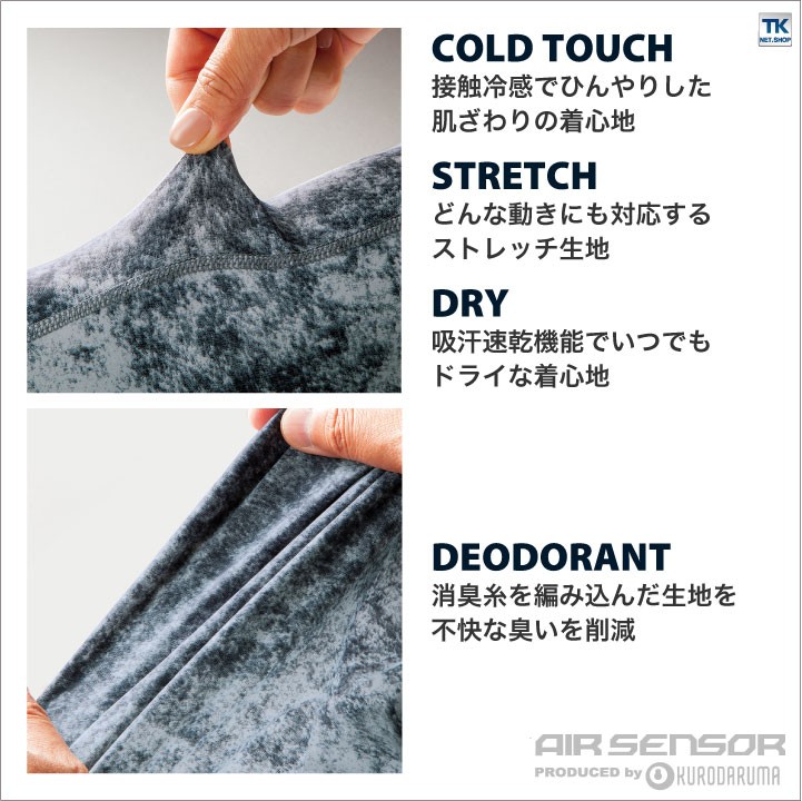 シームレス 接触冷感 ストレッチ 吸汗速乾 消臭テープ 消臭糸 アームカバー クロダルマ エアーセンサー