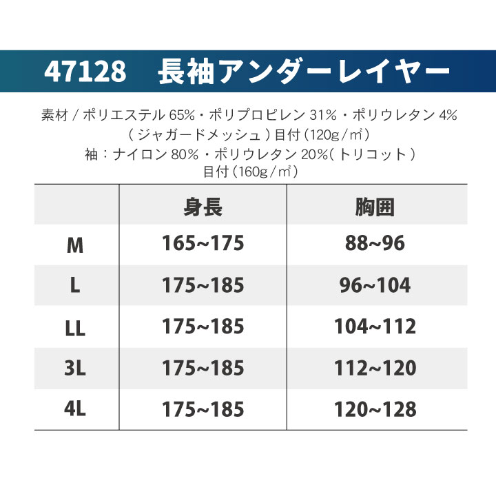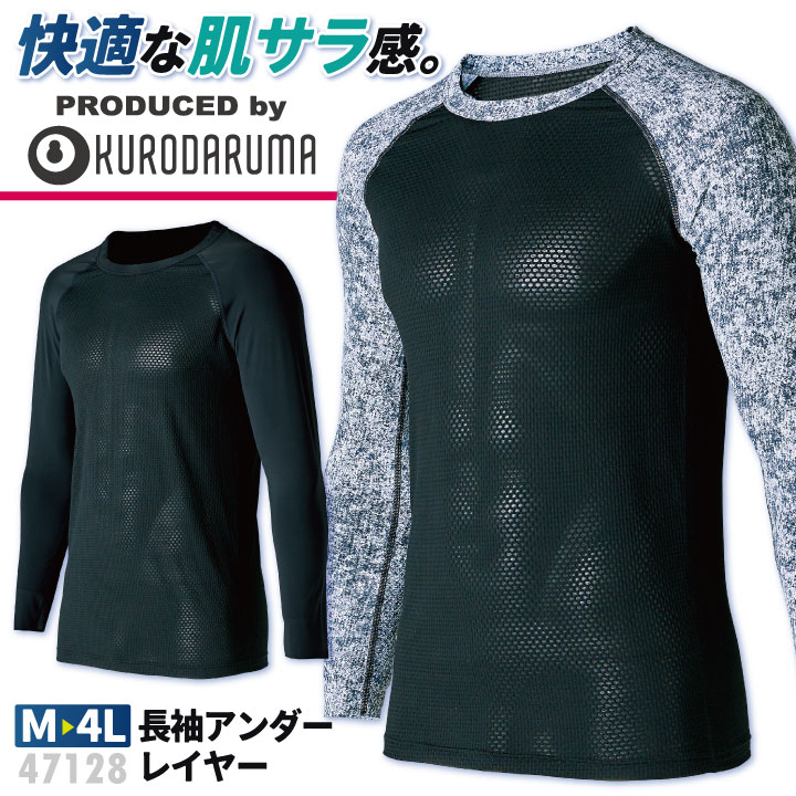 47128 クロダルマ ファン付き作業服のインナーとして最適な、ジャガードメッシュの長袖アンダーレイヤー。 ・モニターにより実際の色と多少ちがって見えることがあります。人気商品のため、商品在庫が欠品することがあります。