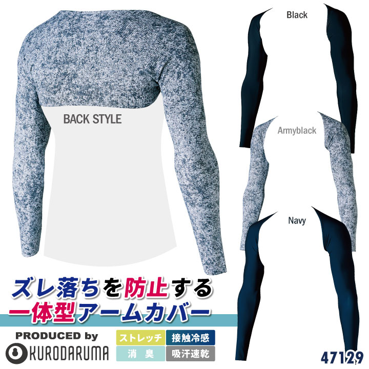 47129 クロダルマ ズレ落ちを防止する、一体型のシームレスアームカバー。 ・モニターにより実際の色と多少ちがって見えることがあります。人気商品のため、商品在庫が欠品することがあります。