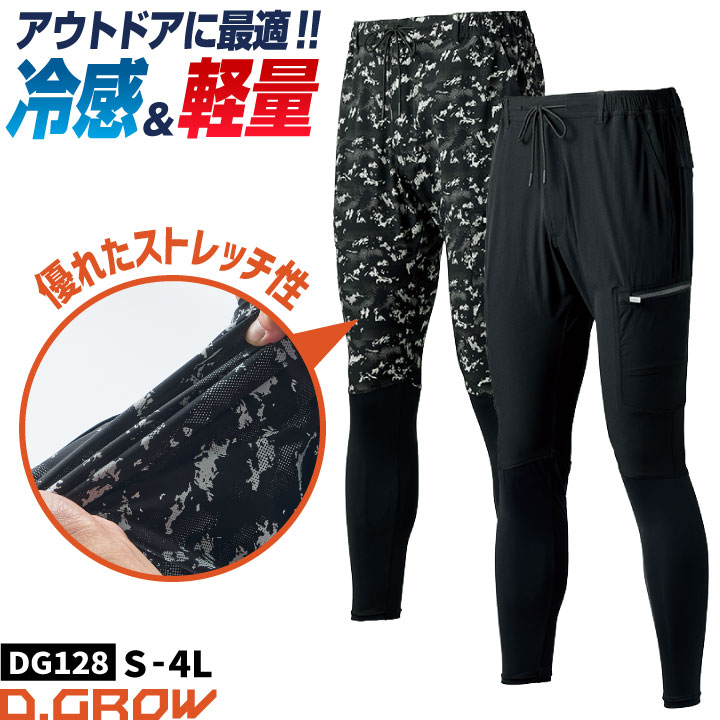 D.GROW ストレッチ パンツ 接触冷感 軽量 レギンス 作業着 作業服 カジュアル メンズ レディース 大きいサイズ 3L 4L ディーグロー クロダルマ kd-dg128-b