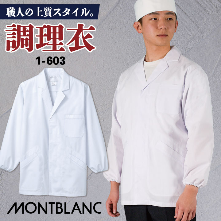 シンプルデザインの、襟付き長袖調理衣。制菌加工を施し、和食店・給食調理衣としても大活躍! メンズ 長袖 住商モンブラン 1-603