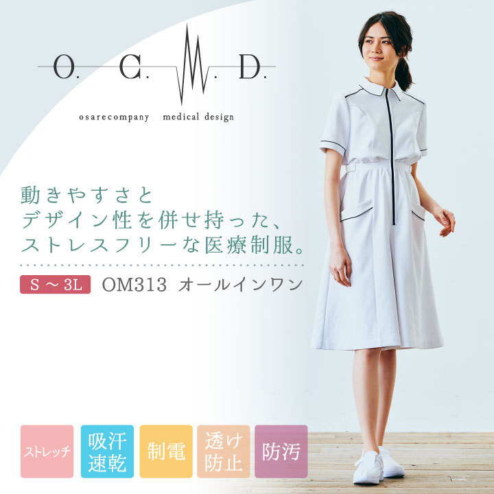 OM3123 住商モンブラン O.C.M.D. オールインワン ストレッチ 透け防止 吸汗 制電 防汚 制菌加工 医療制服 医療 かわいい シンプル ナース レディース