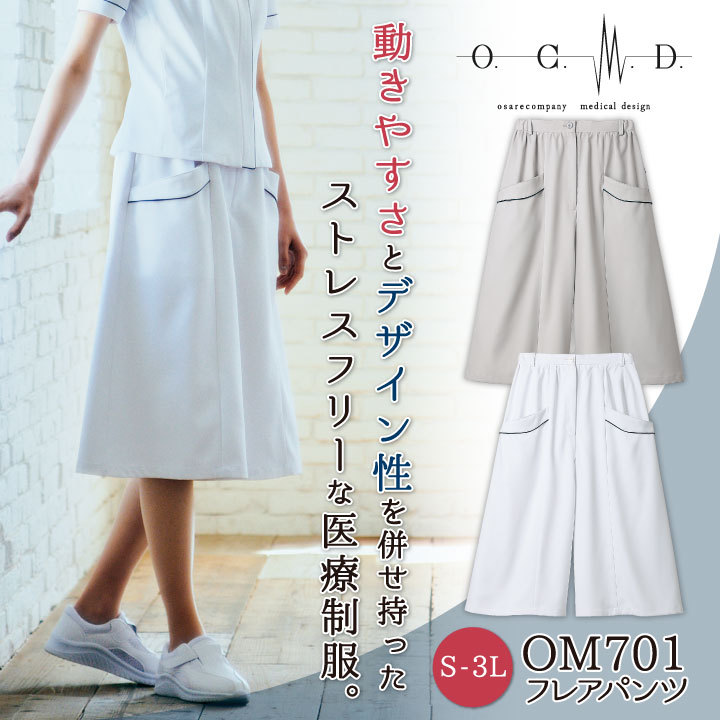 OM701 住商モンブラン O.C.M.D. フレアパンツ 透け防止 吸汗 制電 防汚 制菌加工 医療制服 医療 かわいい シンプル ナース レディース