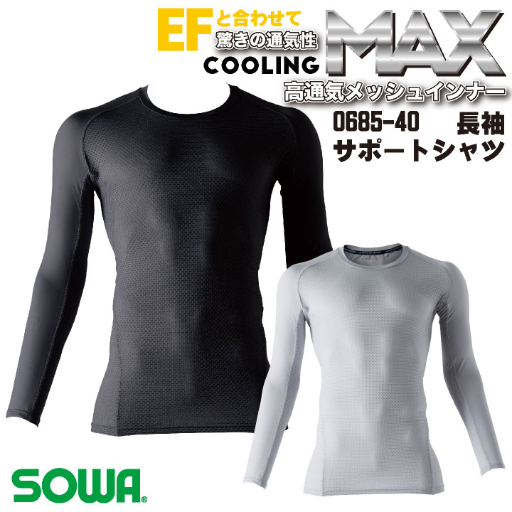 0685-40 SOWA 長袖サポートシャツ 春夏 工事現場 建設業 農作業 ガーデニング アウトドア おすすめ 制服 人気 ブラック シルバーグレー S M L LL 3L 4L ・モニターにより実際の色と多少ちがって見えることがあります。人気商品のため、商品在庫が欠品することがあります。