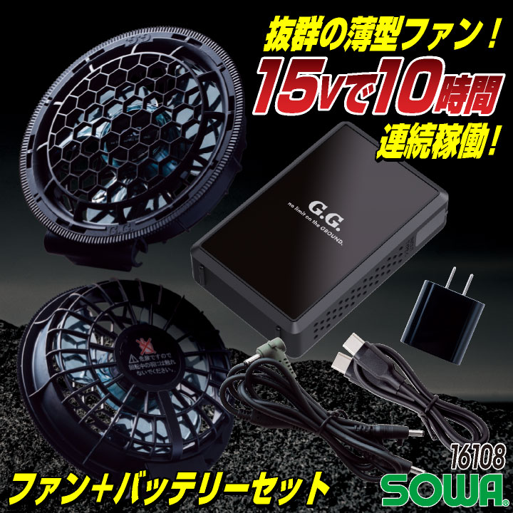 16108 SOWA ファンバテリーセット 薄型 10時間稼働 デバイスセット 春夏 工事現場 建設業 農作業 ガーデニング アウトドア おすすめ 制服 人気 ブラック F ・モニターにより実際の色と多少ちがって見えることがあります。人気商品のため、商品在庫が欠品することがあります。