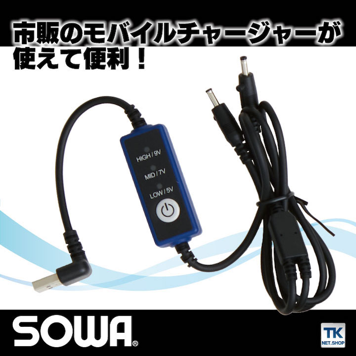 スイッチケーブル 桑和 熱中症対策 空調ウェア モバイルバッテリー用 春夏 SOWA sw-19103