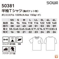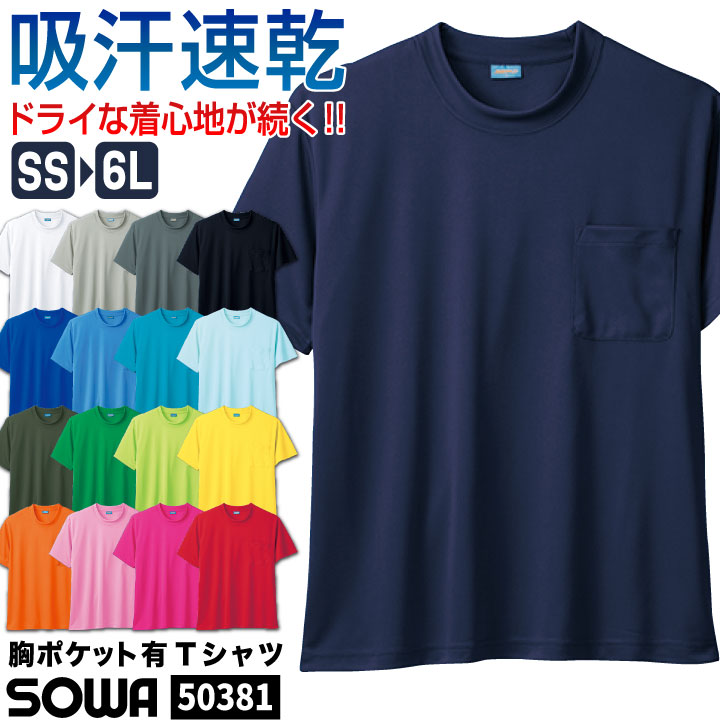 50381 SOWA 半袖Tシャツ 胸ポケットあり ドライ+デオドラント 吸汗速乾加工で続くドライな着心地! 多色展開の大人気カラーTシャツ