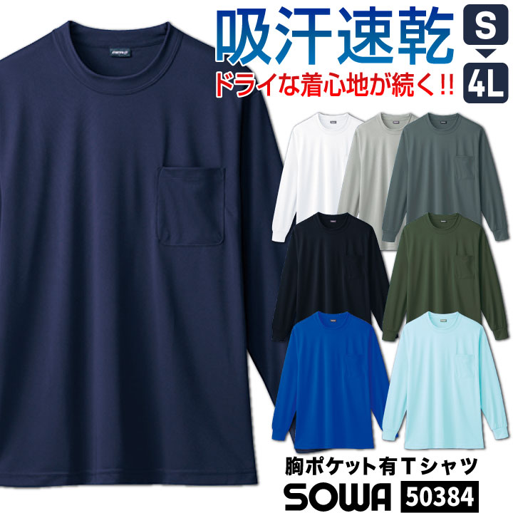 50382 SOWA 長袖Tシャツ 袖口リブ付き 胸ポケットなし ドライ+デオドラント 吸汗速乾加工で続くドライな着心地!