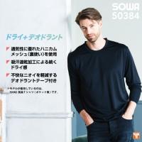 SOWA ドライTシャツ リブ袖 長袖 無地 メッシュ クルーネック カットソー ロンT 仕事着 スポーツ 吸汗速乾 消臭 メンズ レディース 大きいサイズ 桑和 sw-50384