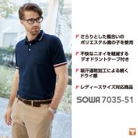 7035-51 SOWA 半袖ポロシャツ 胸ポケットあり 吸汗速乾加工による続くドライ感。 カジュアルでもオフィスでも使える、肌触りの良い鹿の子ラインリブポロシャツ。