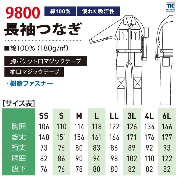 9800 SOWA 長袖つなぎ 春夏 秋冬 工事現場 建設業 農作業 ガーデニング アウトドア おすすめ 制服 人気 豊富なカラバリ