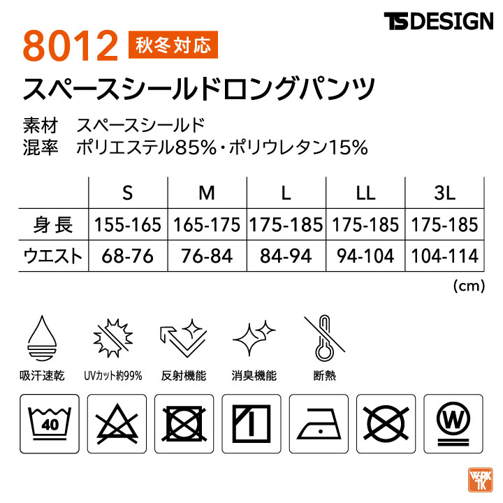 TS-DESIGN 藤和 8012 ロングパンツ 防寒着 インナー 吸水速乾 消臭 反射材付き