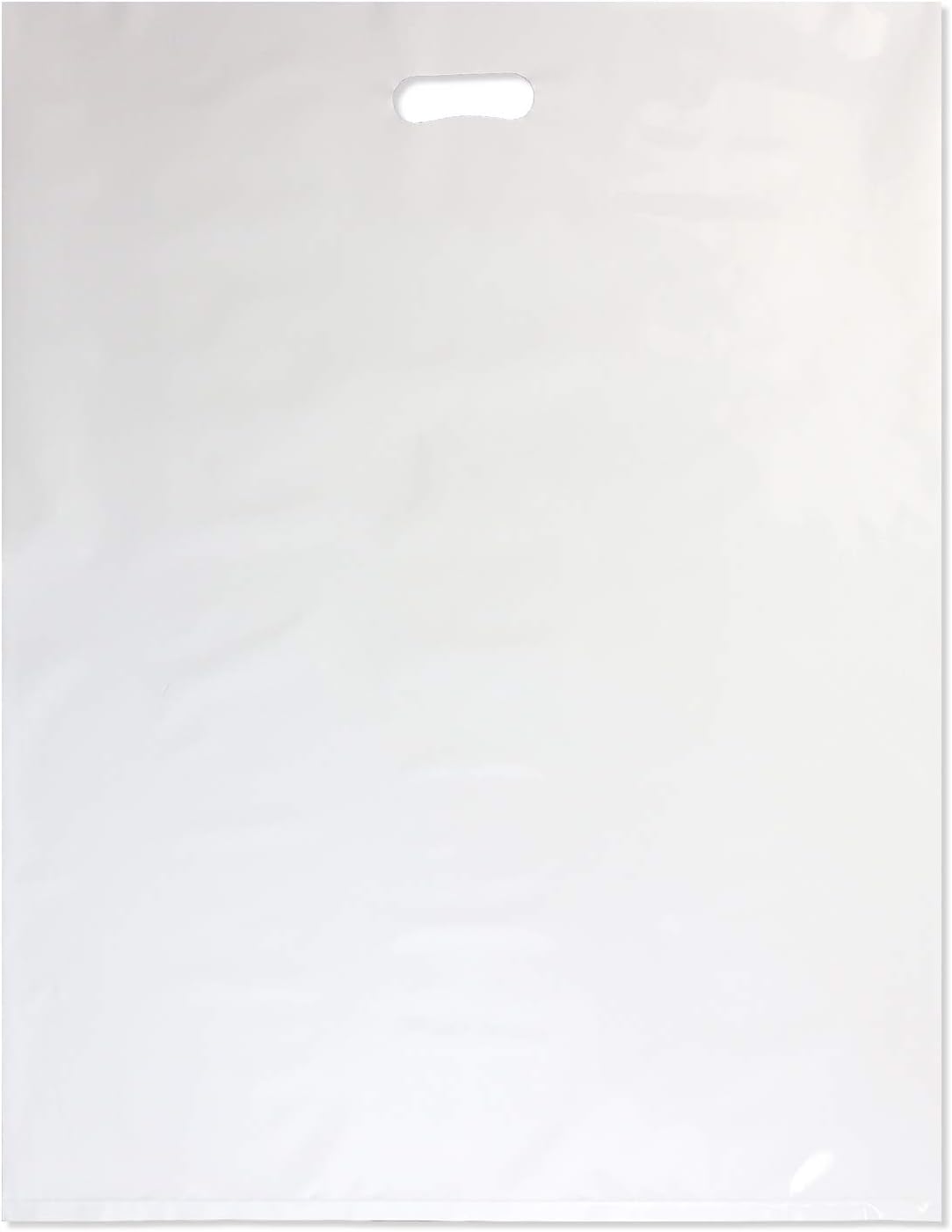 【450x600mm】小判抜き 手提げ袋(白) 破れにくいLLDPE 85ミクロン厚 大きめ【40枚】