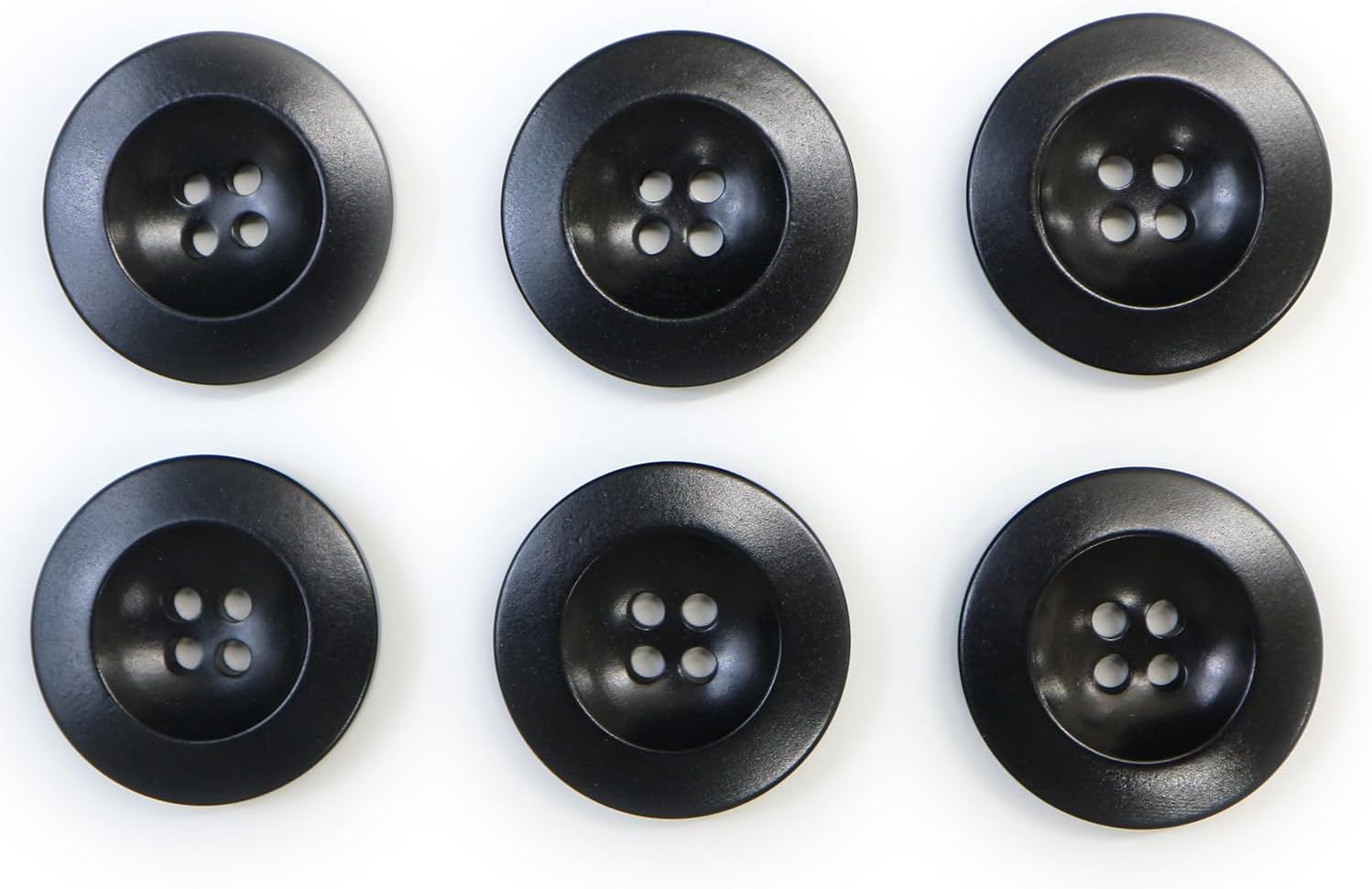 ナットボタン【ブラック】四つ穴ボタン 黒 ベーシック カラーボタン シンプル ボタン 手芸 6個入り【25mm】 B-445