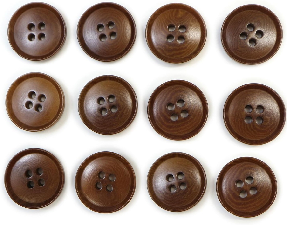 ナットボタン 四つ穴ボタン 【ブラウン】 茶色 フチ薄 スーツボタン ベーシック ウッド ボタン 12個入り 【18mm】 B-800