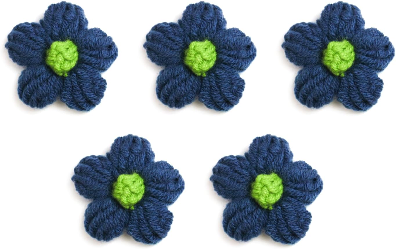 花 パーツ 毛糸 フラワー【ネイビー】5個入り 紺色 手芸 ハンドメイド パーツ デコパーツ デコレーション 立体 KITP-004