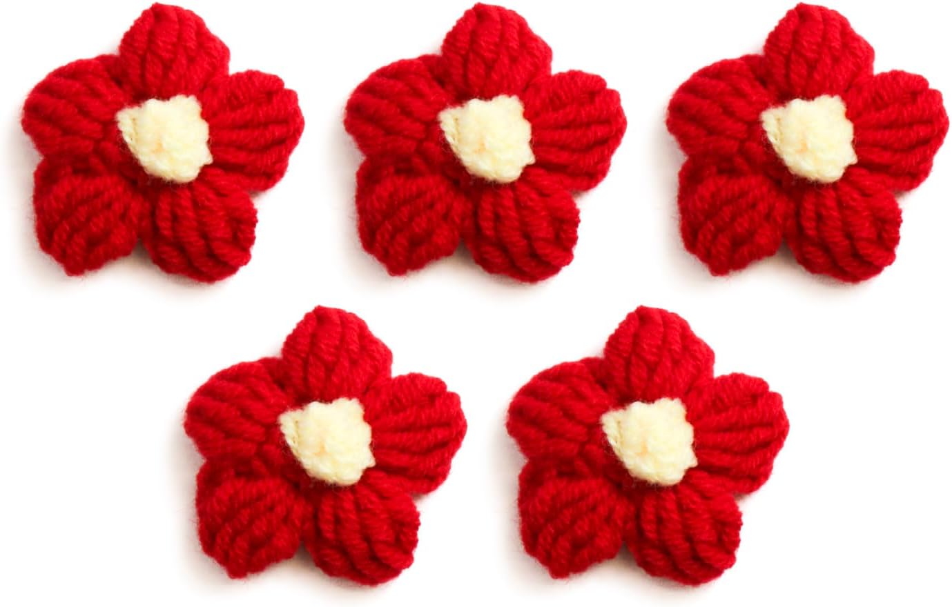 花 パーツ 毛糸 フラワー【レッド】5個入り 赤 手芸 ハンドメイド パーツ デコパーツ デコレーション 立体 KITP-006