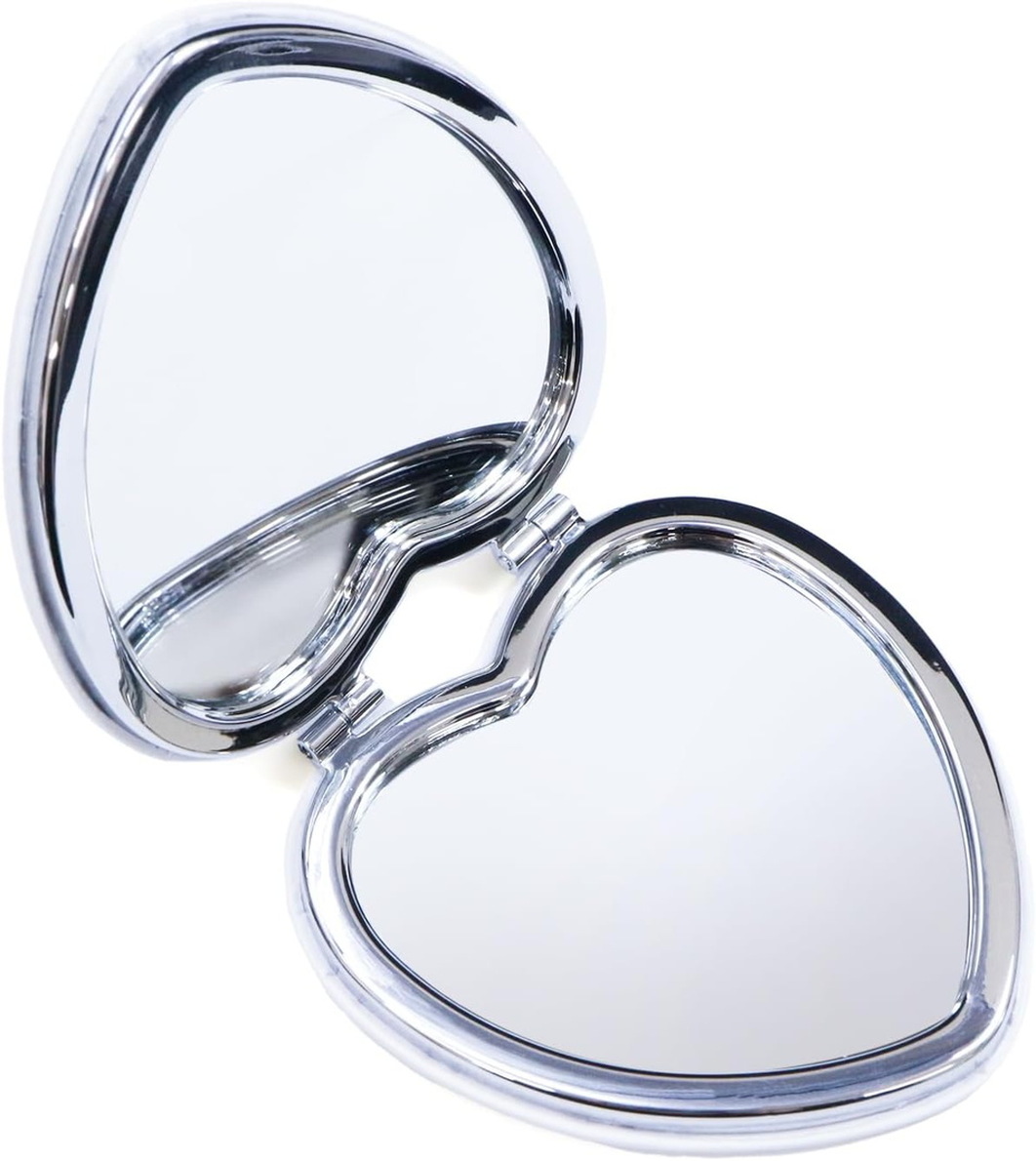 コンパクトミラー 両面鏡【ハート 2倍拡大鏡】化粧鏡 角度調整可 手鏡 携帯 持ち運び ミラー 折りたたみ スリム シンプル メイク KPM-003