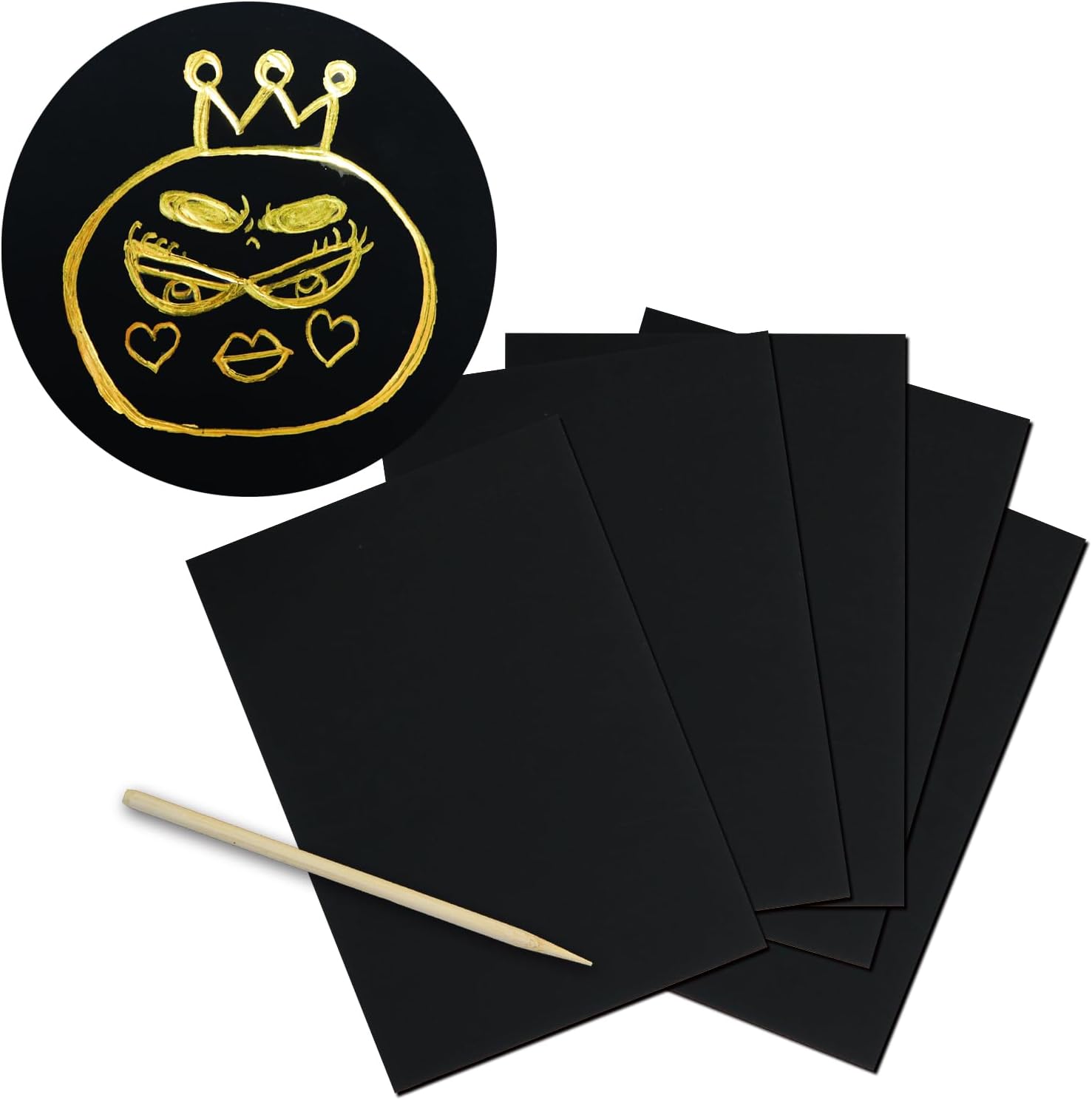 スクラッチアート 5枚入り 小さめA4サイズ 約200×285mm ゴールド 無地 ペーパー 金 削るだけスクラッチ用竹ペン付き セットSCR-003