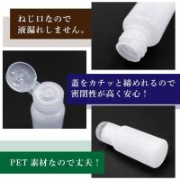 ●【特徴】小分けや持ち運びに便利なプラスチック製のミニボトルです。お出かけや旅行、出張時に化粧水、シャンプー、クリーム、ボディーローションなどを詰め替えて使用できます。キャップカラーは白色と透明タイプの2色からお選びいただけます。※本製品は食品対象外のため、食品には使用しないで下さい。