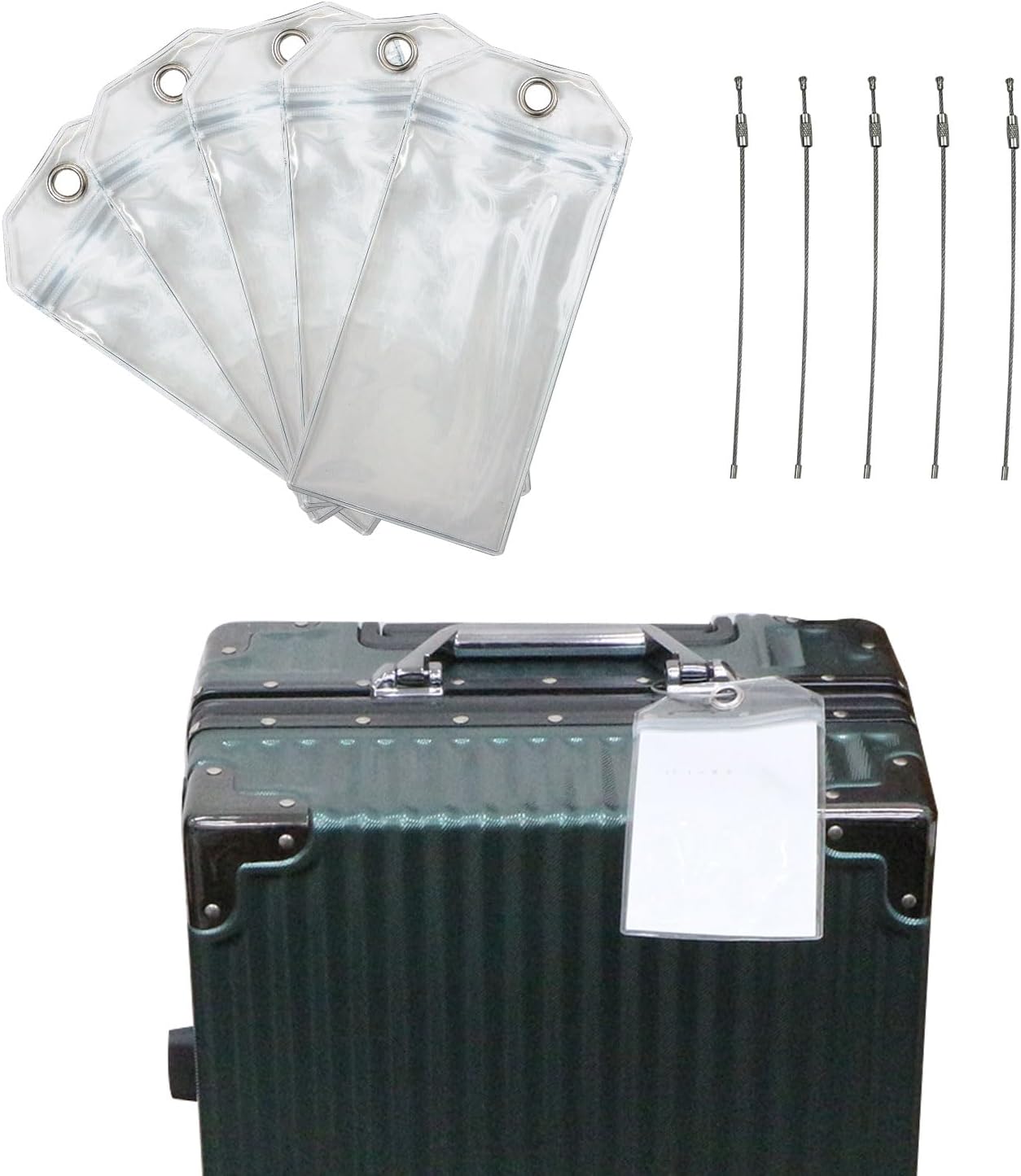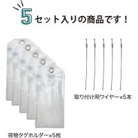 【ワイヤーサイズ】直径:約1.5mm、長さ:約15cm 【数量】5セット入り(荷物タグホルダー5枚・取り付け用ワイヤー5本)