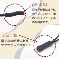 ●持ち手がS字にカーブしているため、指の形にフィットします。滑り止め効果のあるザラザラした表面です。