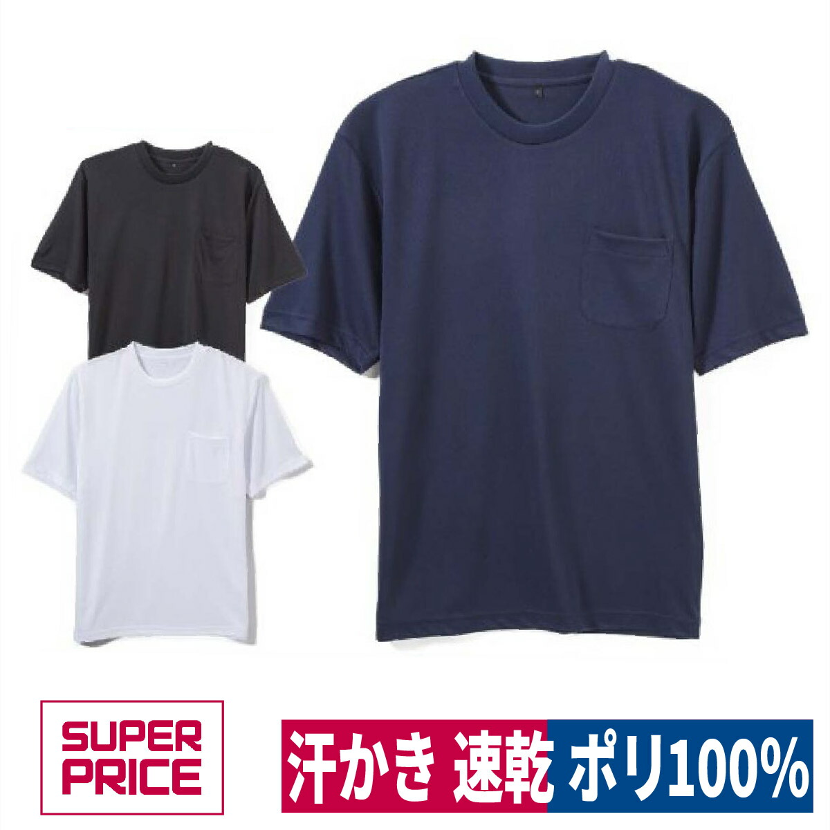 Tシャツ 半袖 メンズ M-4L ポケット付き ドライ 吸汗 速乾 ポリエステル100% SUPER PRICE 5223