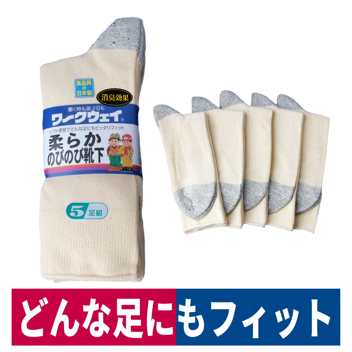 靴下 先丸 柔らかのびのび靴下 5足組 キナリ 消臭 24cm-27cm ワークウェイ 700S