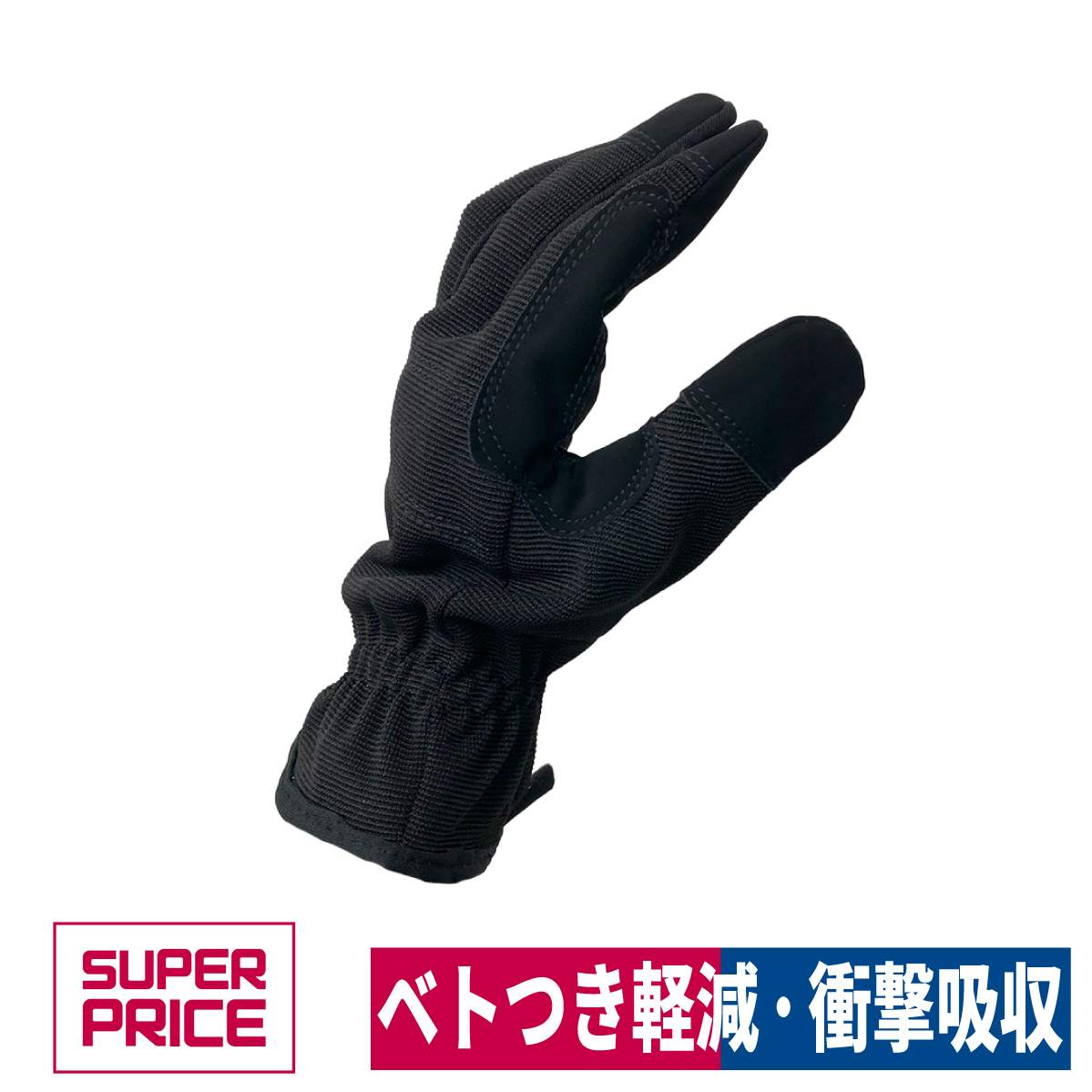 作業用手袋 ベトつき軽減 衝撃吸収 手袋 フリー ブラック メッシュ 人工皮革 1双 SUPER PRICE AL-01