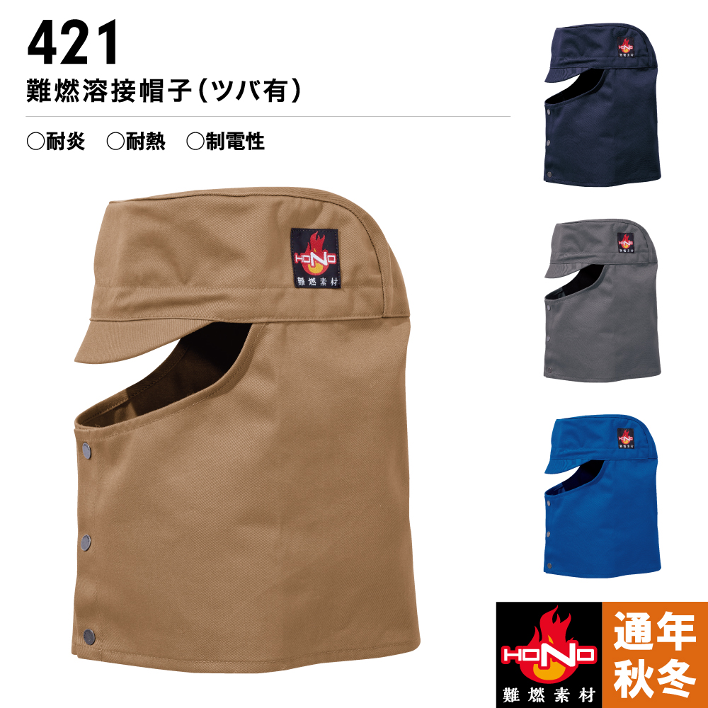 村上被服 帽子 HONO 難燃防炎作業服 難燃溶接帽子(ツバ有) 421 作業着 作業服 溶接 鉄工 綿100% 男性用 メンズ
