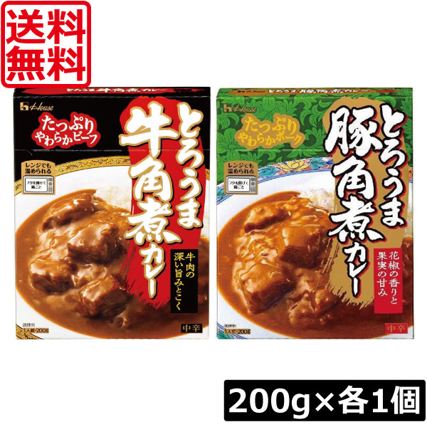 送料無料 ハウス食品 とろうま 牛角煮カレー 豚角煮カレー 中辛 各1個 【2個セット】 時短 簡易 レトルト