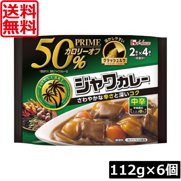 送料無料 ハウス プライムジャワカレー 中辛 112g ×6個 脂質50%オフ 顆粒状