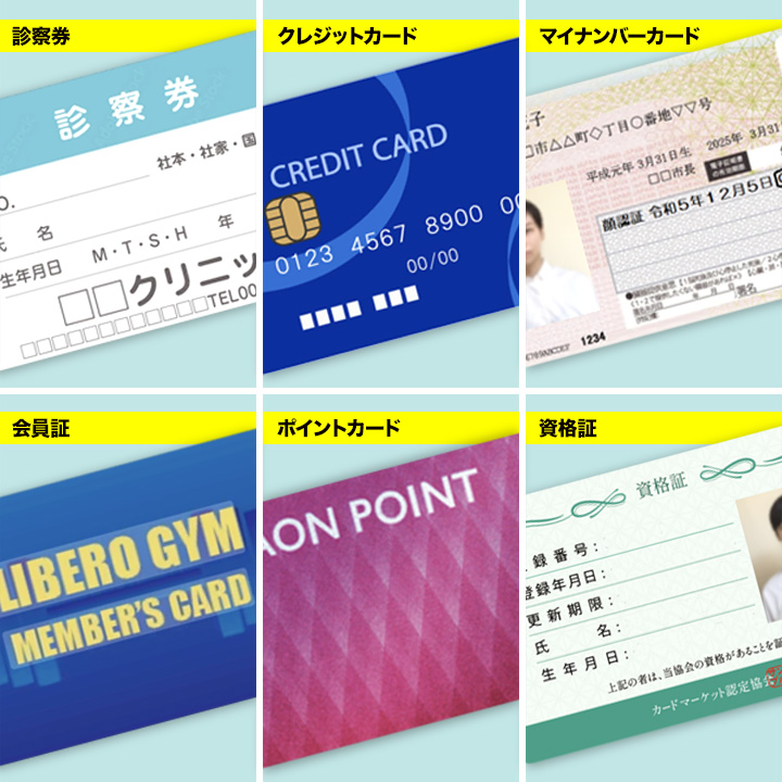 診察券・保険証・クレジットカード・ポイントカード・資格証など、