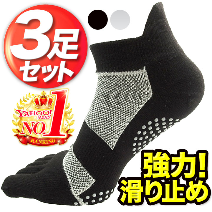 5本指ソックス 滑り止め スポーツ 3足セット メンズ レディース サッカー ゴルフ ランニング 白 黒