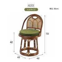 天然籐 回転チェア ハイタイプ 座面高42cm 回転高座椅子 籐椅子 ラタンチェア ダイニングチェア 完成品 360度回転 軽量 肘掛けなし 敬老の日 東京ラタン
