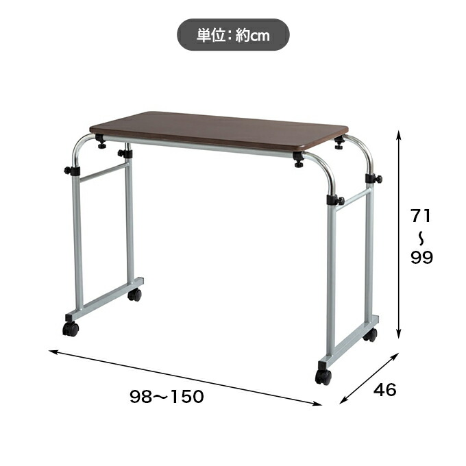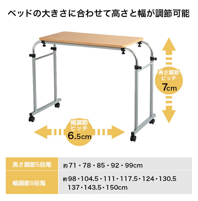 ベッド用テーブル 伸縮式 フリーテーブル 昇降式 介護テーブル ベッドサイドテーブル スタンディングデスク 高さ調節 幅調節 病院 介護 看病 木目調 おしゃれ