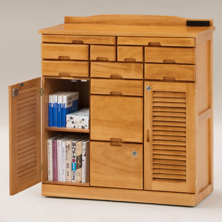 天然木 鍵付き引出しいっぱいファックス台コンセント付き 76cm幅 ファックス台 電話台 fax台 おしゃれ リビング収納 引き出し収納 木製