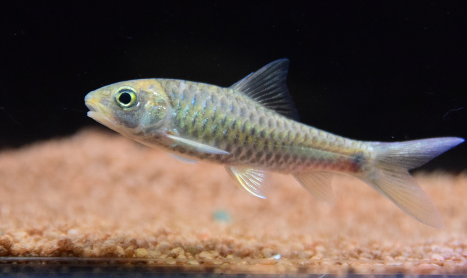 タイ便のネオリソチルス・ソロイデス。小さいので種が合ってるかは分かりませんが、若干体色が茶色っぽいのでソロイデスっぽい感じはしますね。成魚は金色っぽくなる人気種!最大45cm程。