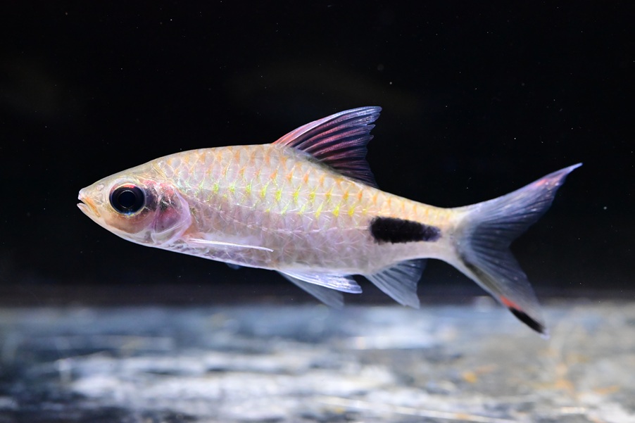 アッシミリスによく似たアプサラ!目の周りがブルーや紫に発色する点はマスカラバルブと一緒です。アプサラは頭部から吻先にかけて赤くなり、体側に赤いスポットが出るようです。アッシミリスでもそういう発色する個体はいましたが、それが別種になったということらしいです。現状ではこれがアプサラなのかも分かりませんが、サイズも大きいですし、今回特価!