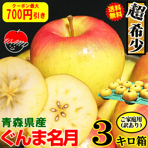 クーポン最大700円!即日発送 青森 りんご 3kg箱 ぐんま名月 送料無料 家庭用/訳あり 青森 リンゴ 3キロ箱 訳あり★名月 家訳 3kg箱