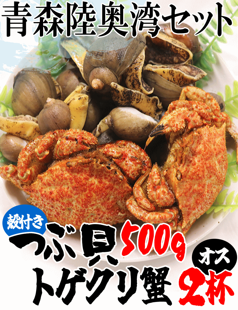 クーポン最大700円引き 青森 陸奥湾 つぶ貝500g トゲクリ蟹オス2杯 セット 凍眠冷凍 送料無料 ツブ トゲクリカニ ギフト