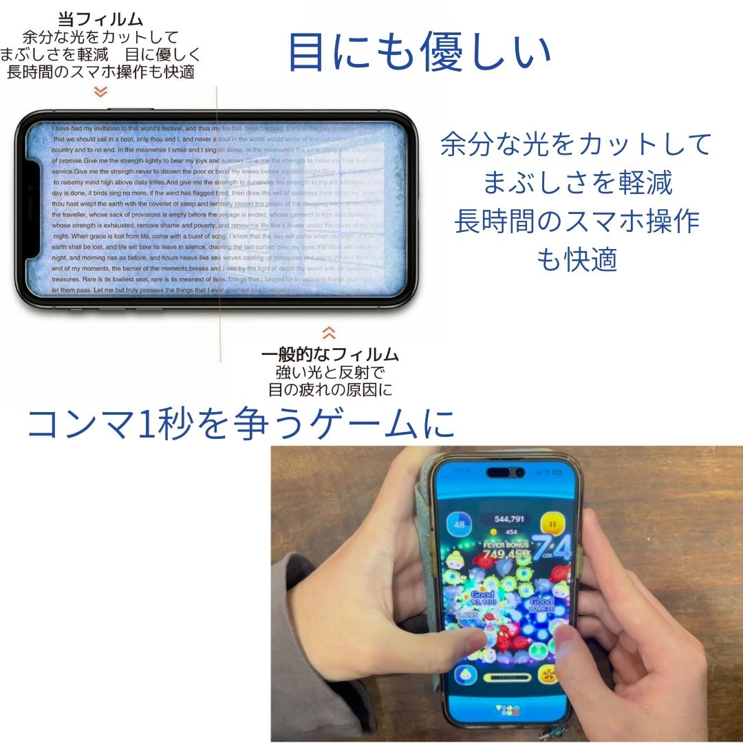 | Q. オフィスでのデスクワーク中、長時間スマホを使うことが多いです。他のフィルムと比較して、このフィルムのメリットは何ですか? |